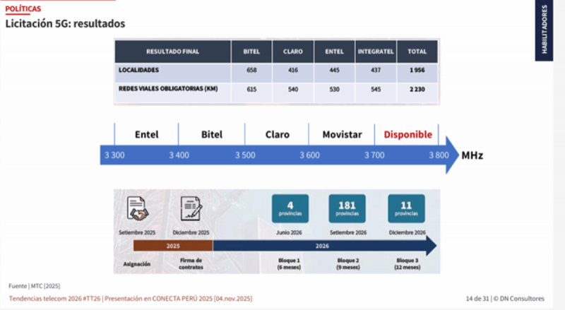Los compromisos de inversión incluyen, entre todos, llevar servicios 4G a 1.221 localidades rurales y desplegar infraestructura en 1.699 kilómetros de carreteras. Los resultados en conectividad se empezarán a ver a partir de la segunda mitad del 2026: en junio se entregará la cobertura al bloque 1, en septiembre el Bloque 2 (181 provincias) y para diciembre el Bloque 3 (11 provincias).