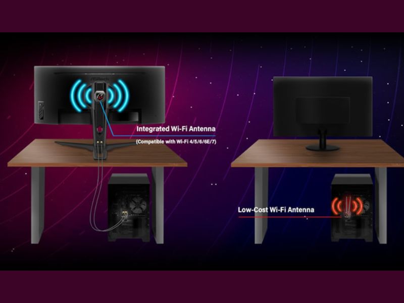 El monitor PG27FFX2A se destaca por ofrecer un soporte ajustable en altura que permite a los usuarios personalizar su ángulo de visión para máxima comodidad en cualquier entorno. Además, está equipado con la tecnología patentada de antena Wi-Fi de la marca, integrada en el soporte. Compatible con el último estándar Wi-Fi 7, esta característica ofrece hasta 7dBi de ganancia máxima para mejorar la estabilidad de red y crear un entorno de conexión con la menor latencia posible.