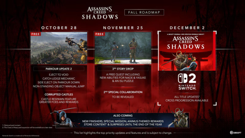 Assassin’s Creed Shadows llegará oficialmente a Nintendo Switch 2 en diciembre