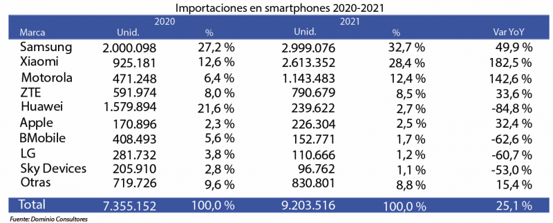 Importaciones de smartphones