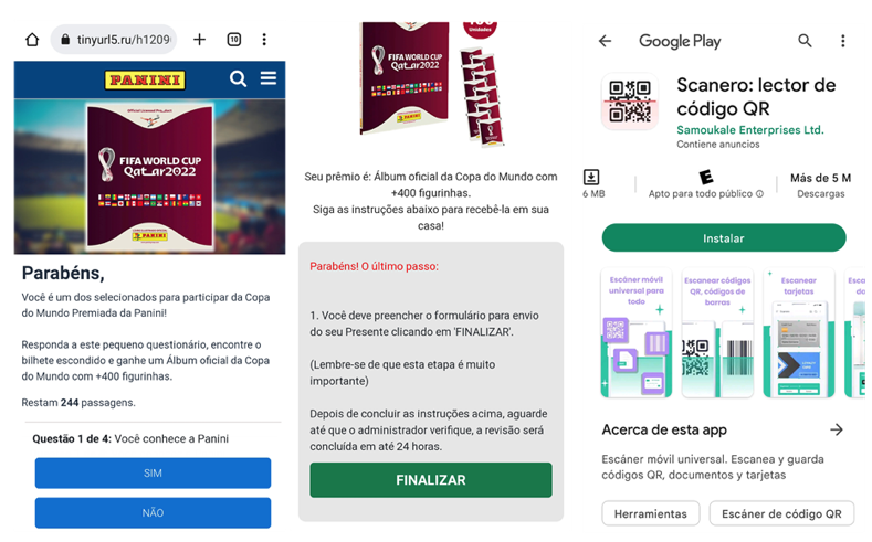 En Brasil se registró una campaña que circula en WhatsApp que intenta hacer creer que Panini está ofreciendo la oportunidad de ganar el álbum y 400 figuritas. Sin embargo, se trata de un engaño que busca hacer que la víctima descargue una app de Google Play de dudosa reputación para escanear códigos QR.