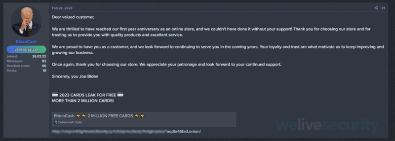 Desde el blog Cyble, quienes identificaron la publicación de esta información, el anuncio de BidenCash tiene como objetivo promocionar el servicio.