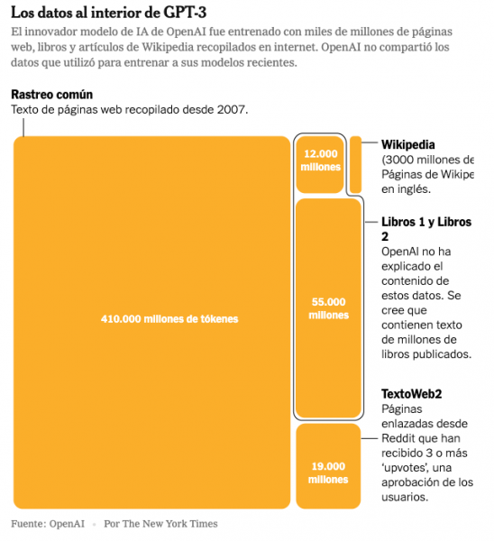 Algunos modelos de lenguaje de gran tamaño, tales como GPT-3 de OpenAI, lanzado en 2020, se entrenaron con cientos de miles de millones de “tókenes”, que en esencia son palabras o pedazos de palabras. Los modelos más recientes se entrenaron con más de tres billones de tókenes.