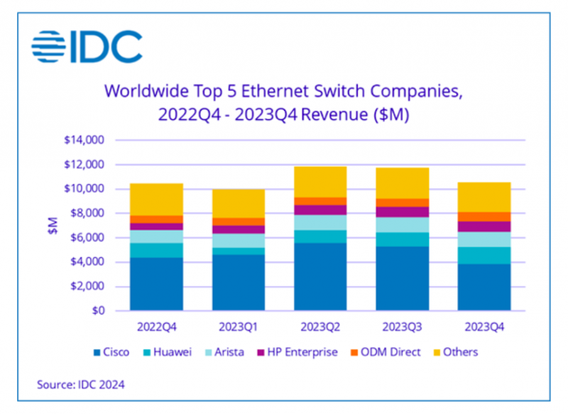 Las cinco mayores empresas de switches de Ethernet del mundo – Ganancias cuarto trimestre de 2022 y 2023