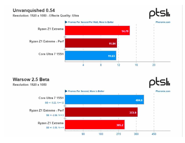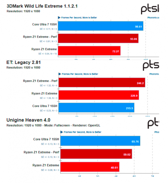 Antes de nada, hay que decir que Intel ha mejorado mucho su iGPU en esta nueva generación. Y el Intel Core Ultra 7 155H consigue acercarse mucho al rendimiento gráfico de las APUs de AMD de última generación, lo cual es un dato positivo. Incluso, según algunos benchmarks superaría a la NVIDIA GeForce GTX 1060 dedicada. Sin embargo, parece que no puede con el AMD Ryzen Z1 Extreme en rendimiento gráfico: