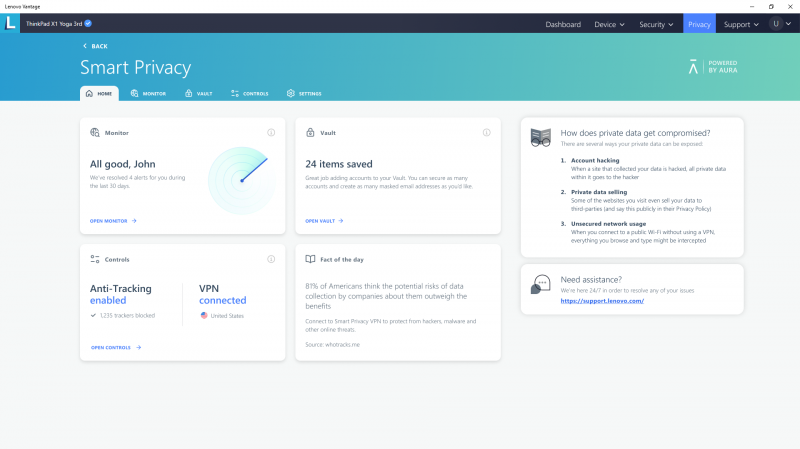 El año pasado, la marca presentó Vantage Smart Performance Services, una comprobación de estado del sistema de autodiagnóstico que ofrece funciones tanto a petición como automatizadas para mantener los dispositivos funcionando de forma segura y sin problemas. Con la capacidad de analizar, detectar y eliminar spyware, malware y adware, así como solucionar problemas de red y acceso y ajustar automáticamente la PC, Vantage Smart Performance Services, como Lenovo Smart Privacy Services, se trata de poner el poder en tus manos.