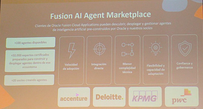 Entre los anuncios de productos señalaron a Oracle AI Data Platform (plataforma que conecta datos empresariales con herramientas de IA), Oracle AI Database 26ai (base de datos con IA integrada en el núcleo), AI Agent Studio y Marketplace (espacio para crear asistentes inteligentes) y Multicloud Universal Credits (para simplificar la compra de servicios en la nube).