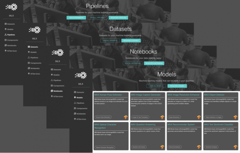 Machine Learning eXchange (MLX) permite cargar, registrar, ejecutar e implementar pipelines de IA y componentes de pipelines, modelos, datasets y notebooks.