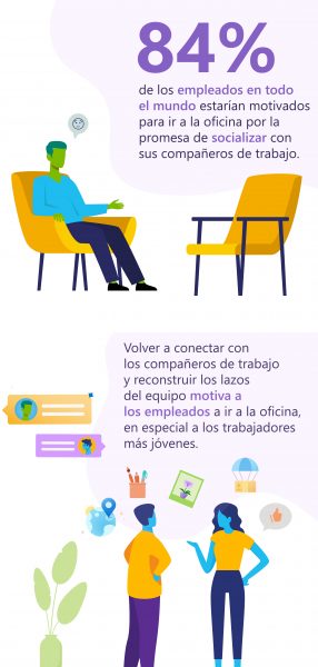 - Aceptar que las personas acuden a la oficina para ver a sus colegas: El 73% de los empleados afirman que necesitan una razón para acudir a la oficina además de solo las expectativas de la compañía, pero que se sentirían motivados a acudir para encontrarse con sus compañeros de trabajo (84%) o reconstruir los lazos con su equipo (85%). Las comunicaciones digitales serán fundamentales para mantener a las personas conectadas dentro y fuera de la oficina —tanto los empleados como los líderes clasificaron la comunicación como la habilidad más necesaria para desempeñarse con éxito este año—.