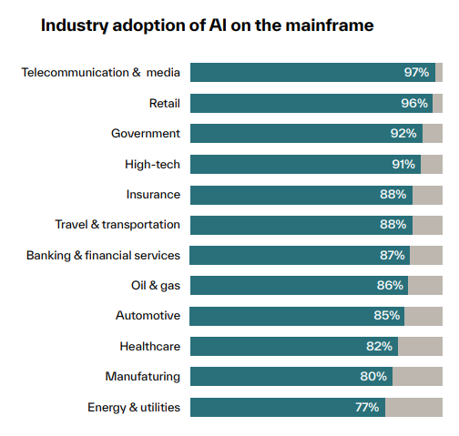 Sin embargo, persisten algunas barreras significativas. El 12% de las empresas aún no planea utilizar la IA tradicional y/o generativa. Los principales obstáculos son los protocolos de seguridad que limitan el acceso a los datos del mainframe (47%), la percepción de que la tecnología de IA generativa carece de madurez (41%) y las barreras técnicas específicas del mainframe (40%).