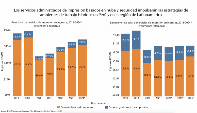 La decisión de las organizaciones de adoptar fuerzas laborales híbridas se convertiría en uno de los principales impulsos a la hora de implementar herramientas y servicios administrados de impresión basados en nube y seguridad. El mercado peruano tiene una oportunidad de crecimiento para el año de 2023 del +13.3 % en comparación con 2022, año en el que el regreso a la oficina ha sido más lento de lo esperado. Durante 2021, con la apertura de los espacios de trabajo, el volumen de páginas impresas logró tener un repunte, pero además habilitó la oportunidad de abrir una oferta de servicios más robusta hacia las empresas que han implementado estrategia de digitalización.