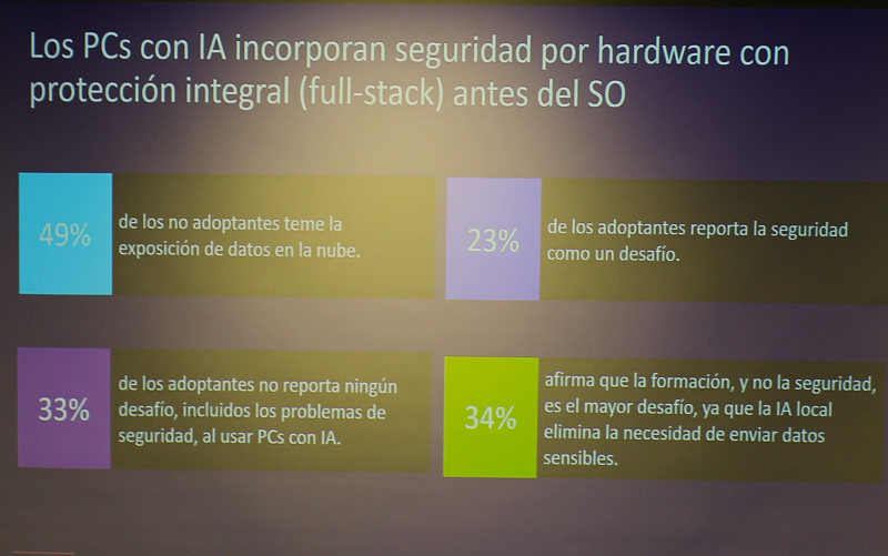 “El 34% de encuestados afirma que la formación, y no la seguridad, es el mayor desafío, ya que la IA local elimina la necesidad de enviar datos sensibles. Esto es lo relevante, porque hoy vemos el boom de ChatGPT con gran adopción, con herramientas que nos vuelven más productivos en esquemas para que todos adopten la IA”, explicó el ejecutivo, quien también resaltó la importancia de comunicar cómo se está utilizando la tecnología para que las comunidades entiendan su relevancia.