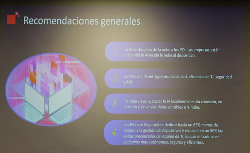 “Vemos una transición importante, el boom de la IA empezó en la nube y ahora está yendo a la PC. Las empresas se ven mucho más animadas a buscar herramientas y utilizar la IA, ya no desde la nube sino desde el dispositivo. Lo que más entrega una PC con IA es productividad, son muchos los datos que hablan de cómo se transforman las labores del día a día y el tiempo que nos ahorran en aspectos operativos. Eso es algo probado y las empresas deben sacarle provecho.”, complementó.