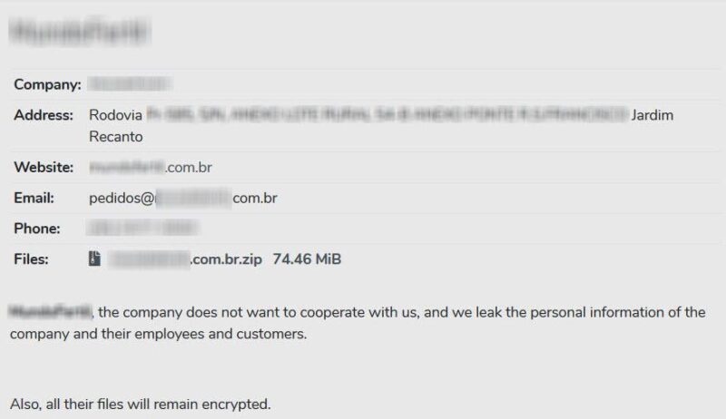 Un ejemplo es el caso del ataque al sitio de la prefectura de un municipio ubicado en el Estado de Río de Janeiro, en Brasil, en el cual la víctima decidió no pagar a los criminales. En retorno, los atacantes decidieron publicar en su sitio una pequeña porción de los archivos robados, amenazando con responder con una brecha de datos de todo el sitio si no se entrega el pago en una fecha próxima. Esta estrategia extorsiva incluye el robo de información sensible de la víctima previo al cifrado de los datos.