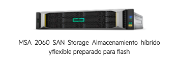 HPE MSA 2060 es un sistema de almacenamiento híbrido preparado para flash, diseñado para ofrecer aceleración asequible de aplicaciones manos libres para implementaciones en entornos de oficina pequeños y remotos.