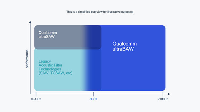 ¿Por qué es importante?: El nuevo filtro RF ultraBAW amplía y expande el rendimiento de vanguardia de nuestra tecnología ultraSAW anunciada anteriormente. Mientras que ultraSAW cubre las frecuencias de banda baja de 600 MHz a 2,7 GHz, cubre el rango de 2,7 a 7,2 GHz, ampliando la conectividad de banda media hasta sub-7 GHz. La solución ultraBAW también admite canales ultraanchos de hasta 300 MHz, y la coexistencia para redes 5G y/o Wi-Fi, lo que permite descargas y cargas más rápidas.