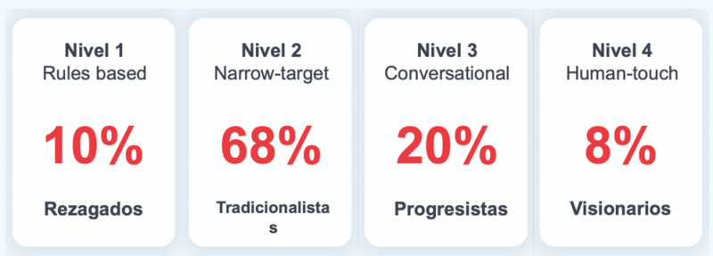 Con relación a la adopción de tecnología de autoatención, realizó esta clasificación de categorías y obtuvo los siguientes resultados: