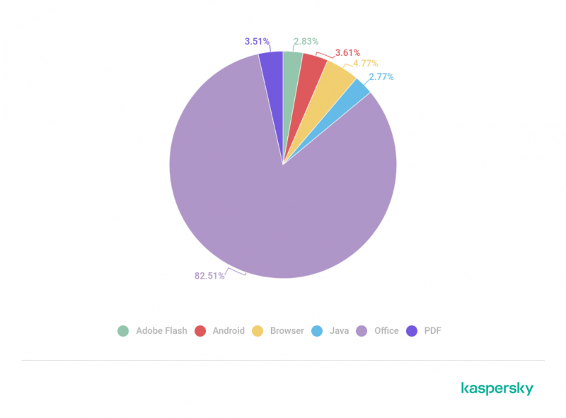 El número de exploits para vulnerabilidades conocidas en la suite de Microsoft Office aumentó durante el segundo trimestre de 2022, representando el 82% del número total de exploits en diferentes plataformas y software, como Adobe Flash, Android, y Java, de acuerdo con el último informe trimestral de malware de Kaspersky. Según expertos de la empresa, las versiones obsoletas de programas y aplicaciones siguen siendo los principales objetivos de los atacantes, con casi 547,000 usuarios afectados por estas vulnerabilidades en el último trimestre.